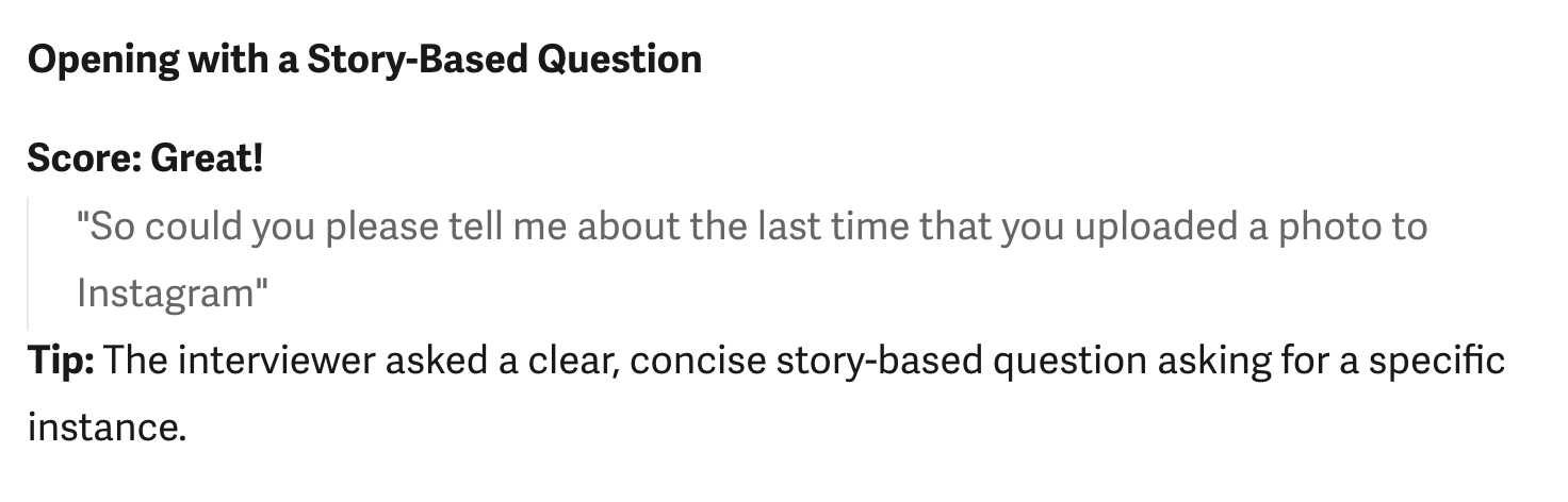 Get detailed, personalized feedback with customized coaching tips on every practice interview.